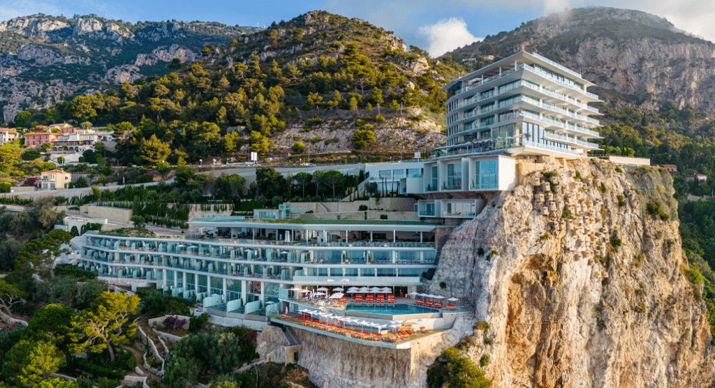 The emblematic modernist architecture of the Maybourne Riviera hotel perches perfectly on the Côte D’Azur between Monte Carlo and Menton, with glittering sea-views.
