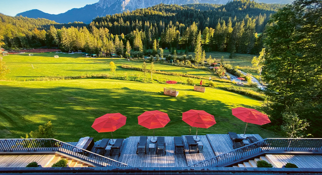 Built in 1916 to be a place of rest and reflection in the Bavarian Alps, this alpine resort is just 100 kilometers south of Munich and surrounded by breathtaking nature at the foot of the Wetterstein mountain range. Schloss Elmau features two hotels in one––a Bavarian-style castle, called the Hideway and a more modern annex building, the Retreat.